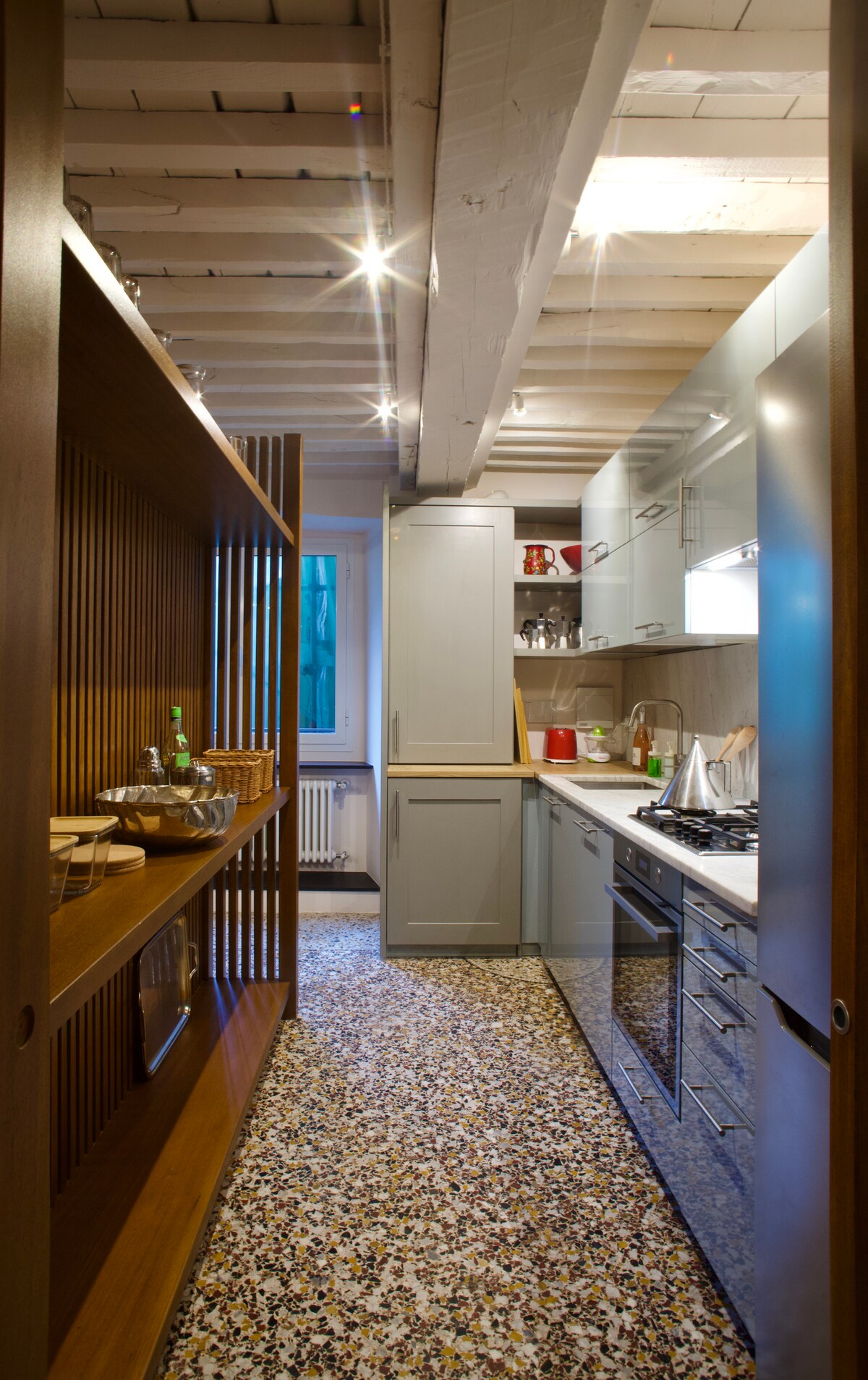 Rezydencja artystyczna La Ventana to nietypowe miejsce na pobyt w historycznym centrum Genui. Apartament z antresolą znajduje się w zabytkowym budynku, który został odnowiony z dbałością o szczegóły, łącząc nowoczesny styl z tradycją. Znajduje się w doskonałej lokalizacji, 50 m od Via San Lorenzo, głównej deptaka w sercu historycznego centrum miasta, w którym znajduje się katedra, i 350 m od Akwarium. (010025-LT-1490; Kod CIN: IT010025C2E46GNBPJ)