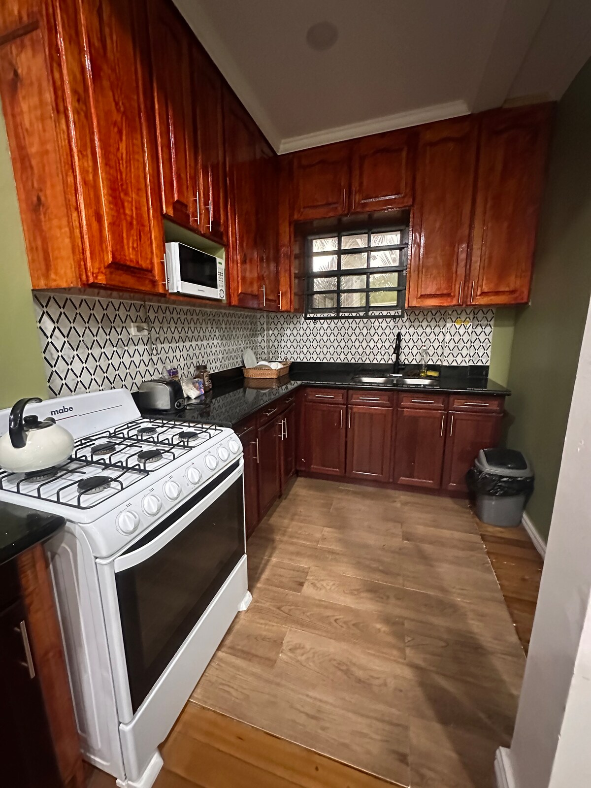 W pełni umeblowane mieszkanie z 2 sypialniami i 2 łazienkami na parterze w Queenstown. Obejmuje szybkie Wi-Fi, kamery bezpieczeństwa, telewizję kablową, ochronę 24/7, generator, ciepłą i zimną wodę, klimatyzację, pralkę i suszarkę. Nieruchomość jest w doskonałym stanie, ma wysokie sufity, przestronne pokoje i jest położona centralnie; 60 minut od lotniska CJIA, 10 minut od centrum Georgetown i 15 minut od centrów handlowych. Supermarket i piekarnia znajdują się w odległości krótkiego spaceru. Można zorganizować odbiór z lotniska.