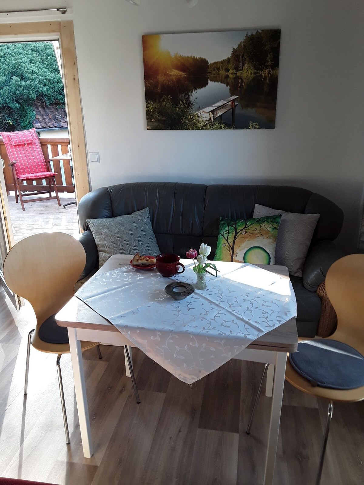 Nasz apartament o powierzchni 42 m² znajduje się na poddaszu naszego domu. Jest bardzo jasny i przyjazny. Do dyspozycji gości jest sypialnia, salon z jadalnią i wygodną kanapą, kuchnia oraz łazienka z wanną, toaletą i umywalką. Przed salonem znajduje się również taras na dachu. Można na nim w spokoju cieszyć się przyrodą. Dostępny jest telewizor i bezpłatne Wi-Fi.