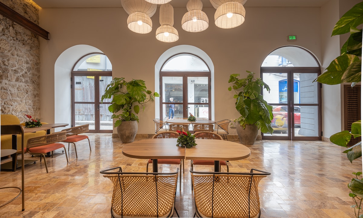 CASA GRACIA HOTEL BOUTIQUE está ubicado a unos pasos de Getsemaní y el Centro Histórico. Habitación (#203) en 2o piso, vista a la piscina, baño privado, cama Queen y sofá cama, AA, agua caliente, WiFi, Smart TV, minibar, escritorio y caja de seguridad. Tendrás acceso a la terraza interior, sala, comedor, piscina (EN MANTENIMIENTO desde 16/abr/26 a 26/abr/26) y rooftop con una hermosa vista del atardecer sobre el Centro Histórico y la bahía. NOTA: TARIFA + IVA 19% (HUESPEDES NACIONALES)