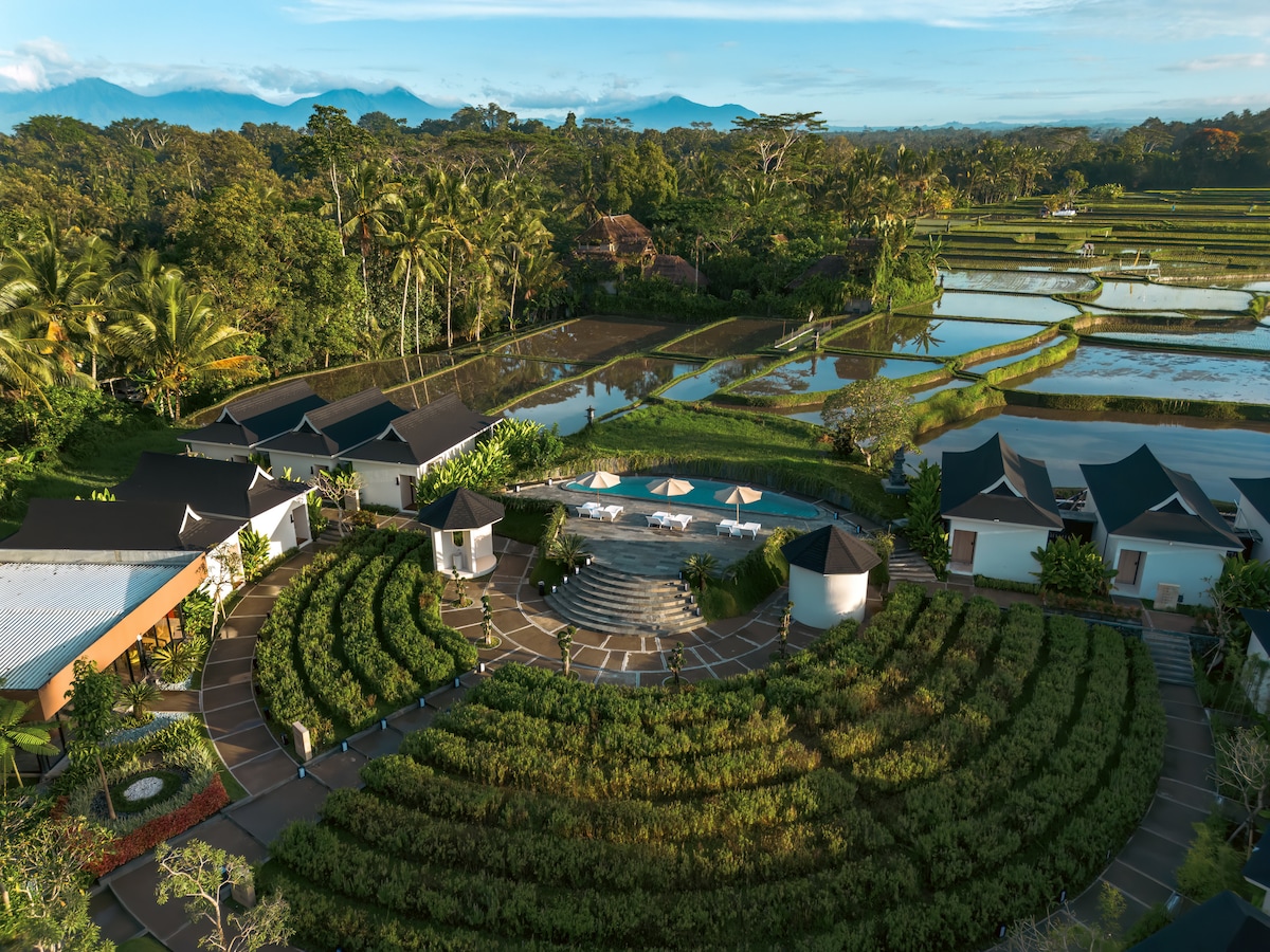 Piękna willa z nowoczesną koncepcją i luksusowy pokój z widokiem pola ryżowego sprawi, że wakacje są bardzo wyjątkowe i niezapomniane. dodatkowo duży basen przed pokojem, który sprawi, że leniwy wyjść. Nasz ośrodek posiada wszystkie udogodnienia, których możesz potrzebować, z szybkim WiFi, suszarka do włosów, Telewizja z ekranem 36 cali z więcej niż 30 kanałów, 2 butelki wody mineralnej na bezpłatny, klimatyzacja, kawa i herbata, deska żelazko w każdym pokoju, a gorąca i zimna woda.
