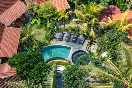 Ukryta w sercu bujnej dżungli Ubud. Więcej niż tylko pobyt - to podróż do serca artystycznej duszy Bali. Nawiąż kontakt z naturą. Obudź się przy melodiach ptaków i zrelaksuj się pod tętniącymi życiem drzewami owocowymi. Spaceruj po malowniczych polach ryżowych, rozkoszuj się lokalnymi smakami w urokliwych kawiarniach lub po prostu zrelaksuj się w prywatnym zielonym zaciszu. Zaledwie 10 minut drogi od słynnego Monkey Forest w Ubud, tętniących życiem targów i kulturowego uroku Pałacu Ubud - ale błogo zacisznego spokoju.