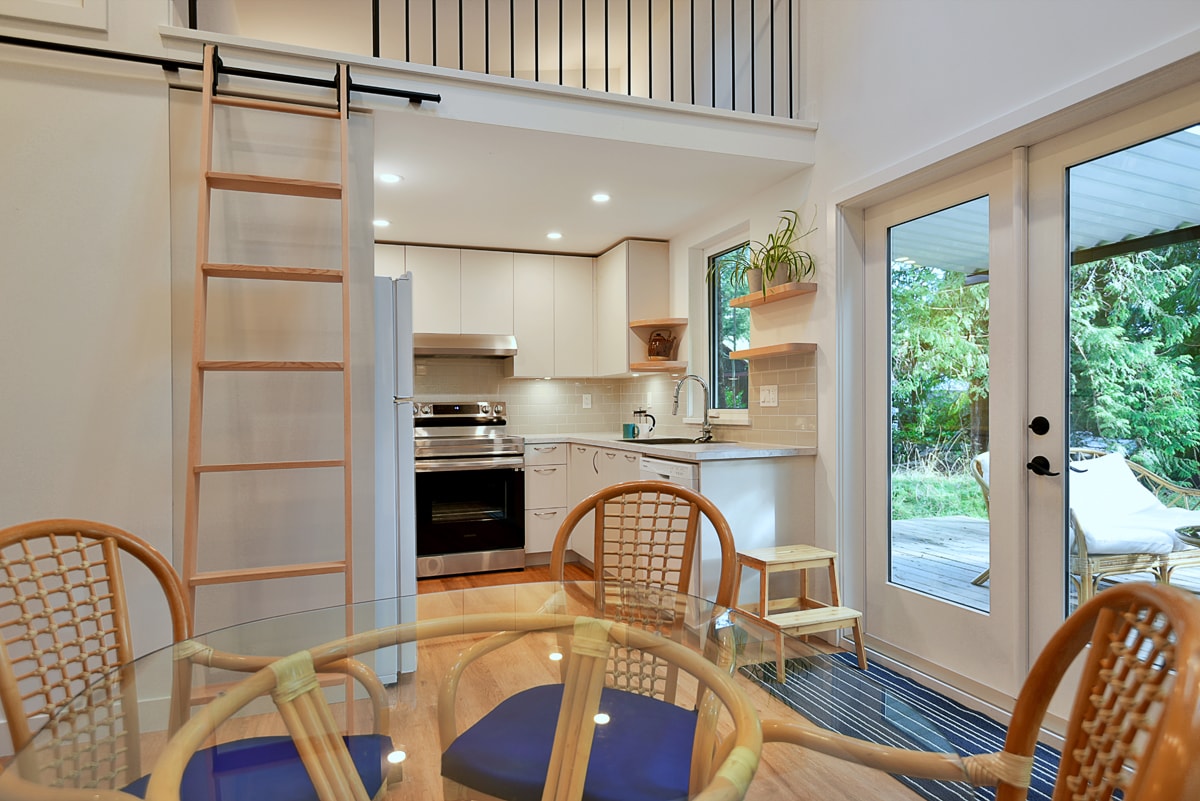 This private open-concept carriage house is centrally located between Bonniebrook Beach and Gibsons. Enjoy the ocean views from the upstairs living area and terrace. Spacious, open, bright and tastefully furnished including queen bed with quality linens. Relax or work from this fully equipped home with eat-in kitchen, high-speed internet, washer/dryer, and Smart TV. There is plenty of room for your vehicle, bicycles, or kayaks. Water views and location make this a cozy five-star experience :)