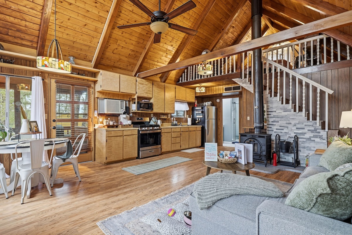 Poznaj naszą luksusową chatkę wśród sosen! Podziwiaj zapierający dech w piersiach widok na łąkę, pozostając blisko miasta. Nasza nowoczesna chata/willa jest idealna dla rodziny szukającej spokojnej wycieczki w góry. Duże łóżko typu king size, łóżko typu queen size (rozkładana sofa), duża łazienka z kabiną prysznicową i pełnowymiarowa kuchnia. Mnóstwo atrakcji w odległości spaceru, w tym piesze wycieczki, golf dyskowy i wędkarstwo! Popularne restauracje są tuż za rogiem lub zamów i oglądaj wybrane przez siebie rozrywki na dwóch sma