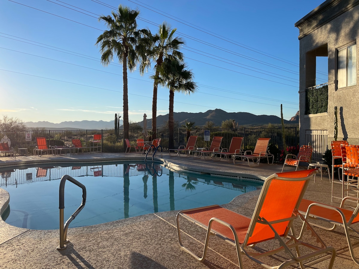 Wspaniały NOWOCZESNY WSPÓŁCZESNY Ultra czysty apartament z 1 sypialnią i 1 łazienką dla 2-4 osób! Rozkładana sofa z materacem z pianki tempurpedic w salonie. Miejsce do siedzenia na tarasie z zapierającymi dech w piersiach widokami na Superstition Mountains w spokojnej społeczności Quail Creek. Basen z ogrzewaną wodą i jacuzzi przez cały rok. Wszystkie wygody domu w Twoim „domu z dala od domu!”