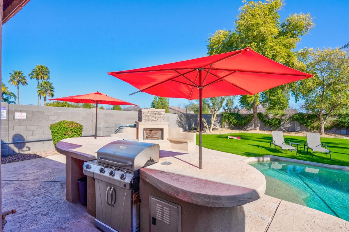 So much room for activities! Our reviews say everything. Everyone loves this gorgeous 5BD/3BA home. Heated pool & spa. Well-equipped chef's kitchen. Dedicated work space & gigabit Wi-Fi. Kid & dog friendly. Sleeps up to 12. 4 TVs w/ free streaming. Gas fireplace, BBQ, table tennis, PAC-MAN, cornhole & tons of games. Quiet neighborhood w/ parks & playgrounds. Near Gilbert Heritage restaurants. Don’t miss the farmer's market. Family fun. Memorable meals. Celebration. Relaxation. All for you.