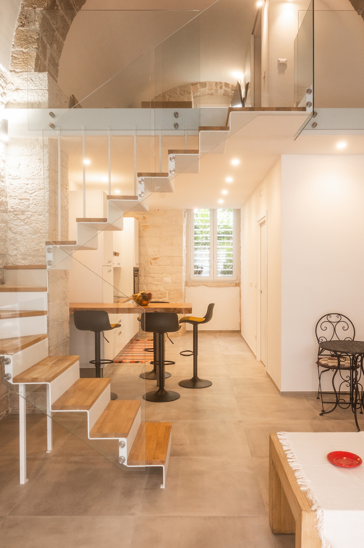 Experience the charm of staying in the vibrant center of Giovinazzo, just steps away from the sea, shops, restaurants, and cultural landmarks. This refined studio apartment, set in an authentic stone building, blends the timeless beauty of tradition with modern comfort and design. The bright and spacious open-space layout features: A cozy mezzanine bedroom A living area with sofa and TV A fully equipped kitchen Two bathrooms, one with a washing machine Air conditioning