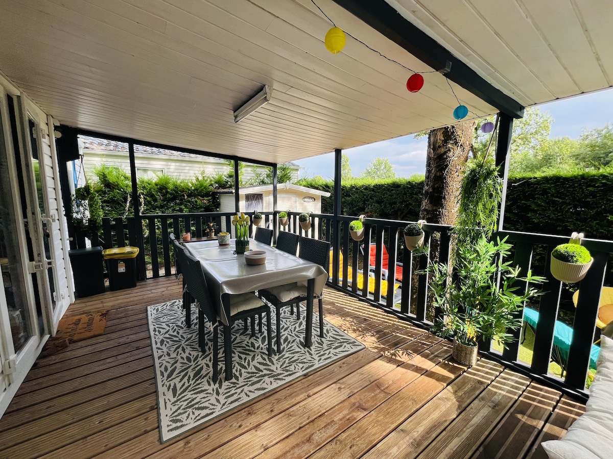 Mobil-home familial tout confort avec grande terrasse couverte et piscine dans le camping. Bienvenue dans notre mobil-home en excellent état, pensé pour accueillir familles et tribus dans un cadre convivial et coloré. Ici, tout est réuni pour partager de beaux moments et créer de précieux souvenirs de vacances. - Un espace de vie chaleureux - 3 chambres confortables - Cuisine aménagée et équipée - Un extérieur idéal pour petits et grands Lieu idéal pour des vacances en famille réussies.