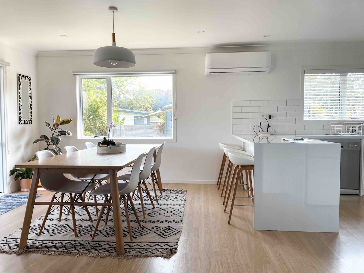 Nowoczesne miejsce wypoczynku dla rodziny i znajomych lub osób podróżujących służbowo. Położony około 100 m spacerem od plaży Waikanae, promenady i ścieżki rowerowej. Zaledwie 2 minuty jazdy od centrum miasta i w odległości spaceru od kultowego browaru Sunshine, kawiarni i lokalnego skateparku. W pełni ogrodzony z doskonałym przepływem wewnątrz i na zewnątrz – idealny na letnią rozrywkę z dużą ilością miejsca dla dzieci do biegania.