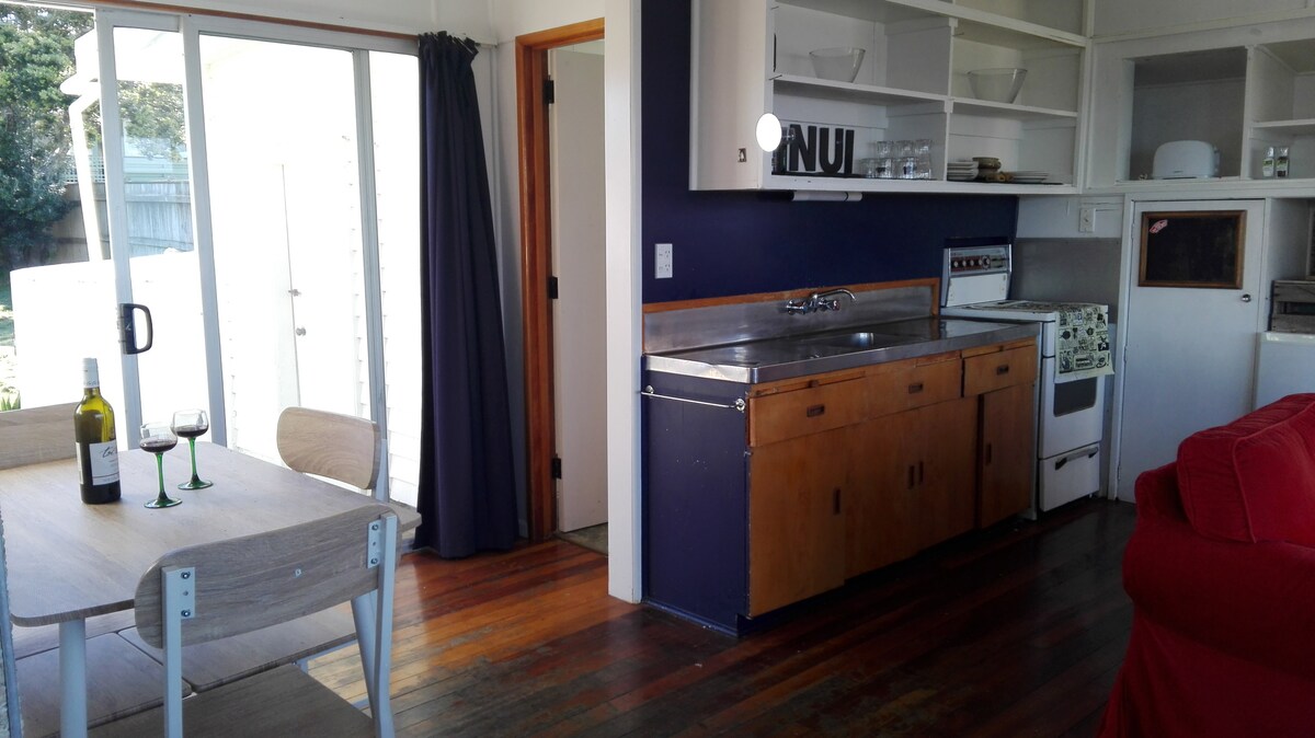 Plaża przed Bach na Wainui Beach. Fantastyczne widoki niezależnie od pogody, oszałamiająca plaża surfingowa, Bach wychodzi na to wszystko. Wow współczynnik słońce wschodzi, zachować odsłonięte zasłony i mieć smakołyk! Domek posiada łóżko królowej w aneksie w głównym obszarze, dzięki czemu można obudzić się do widoku, lub oglądać fale w nocy pod księżycem. W sypialni są prycze, pompa ciepła na tosty zimowe, to miejsce jest rustykalnym skromnym kawałkiem życia na plaży kiwiana, całkowitą przestrzenią dla odmładzania i niebem dla surferów.