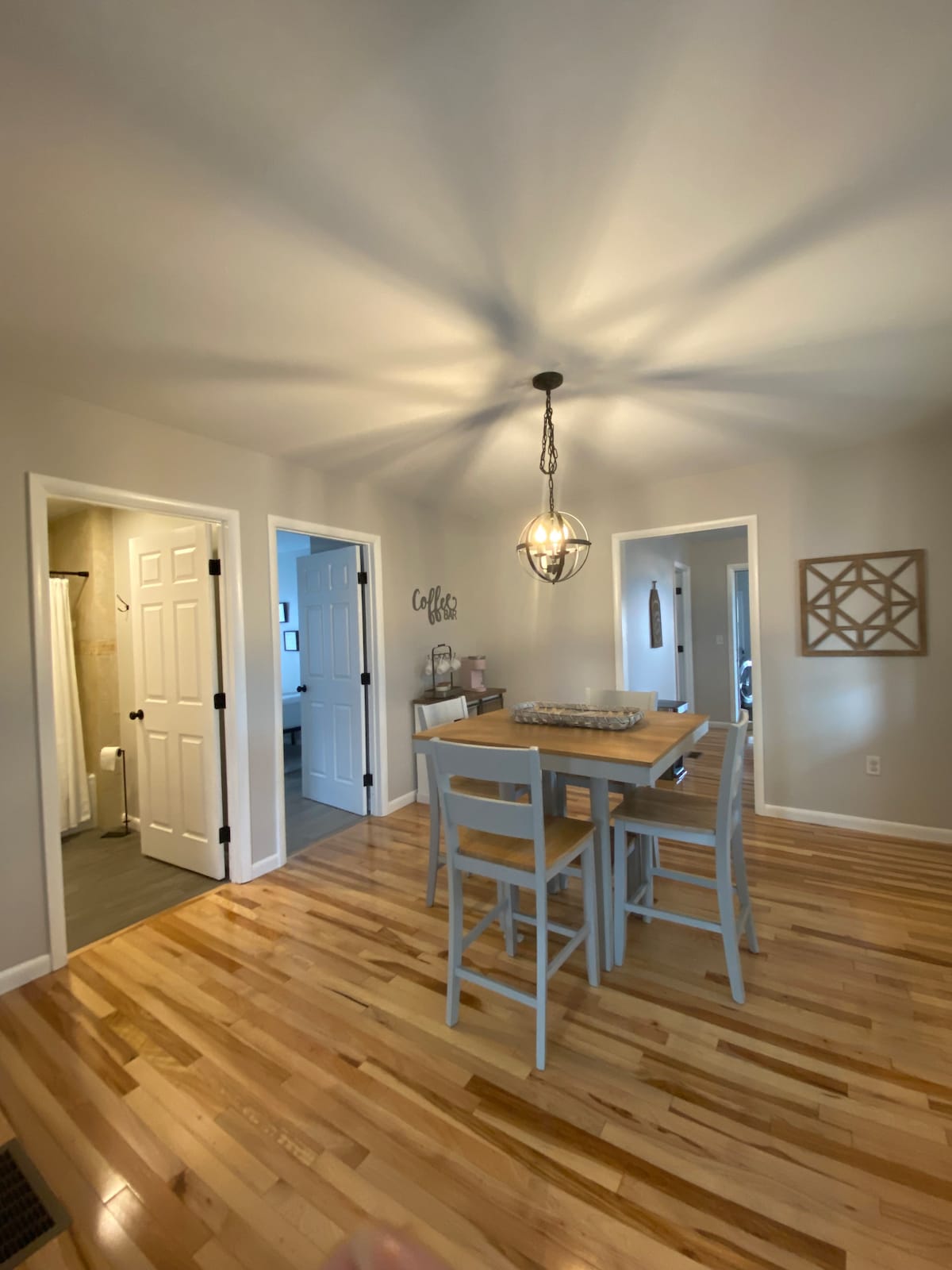 Near Lake George: Pristine lodging with convenient access to the Adirondacks! 12 min. to Lake George & 20 min. to Saratoga. Relax in this calm, stylish space. The quiet setting of surrounding evergreen trees will certainly renew your soul. Prepare a fine meal in the modern kitchen, while taking in the mountain views from the kitchen window. Backyard fire pit! Newly remodeled in 2022, this cozy space features custom industrial and rustic touches throughout. It is one unit of a duplex property.