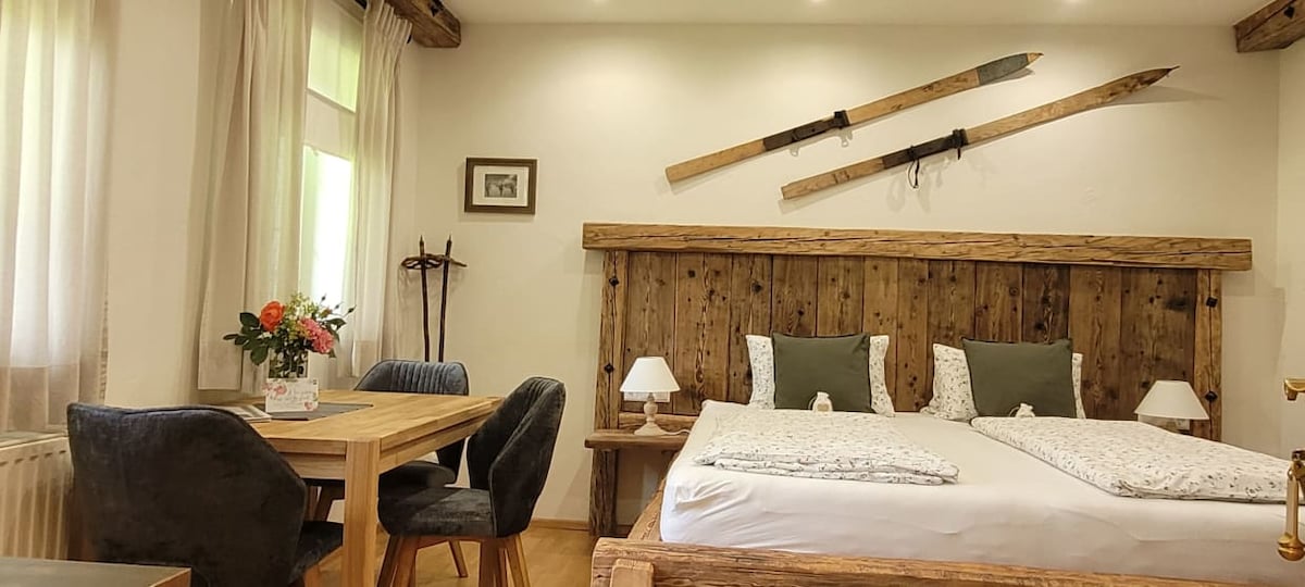 Nasz apartament został zbudowany w 2016 roku i uwielbialiśmy projektować pokoje, wyposażenie i wystrój. Znajduje się na parterze naszego domu i ma osobne wejście, dodatkowy pokój na narty/buty turystyczne, dodatkowe wejście i bezpośrednie połączenie z tarasem i ogrodem. Apartament jest w pełni wyposażony, a widok na piękne góry wokół ciebie można podziwiać siedząc na kanapie :) Po prostu spróbuj i przetestuj „domowe” uczucie w naszym domu...