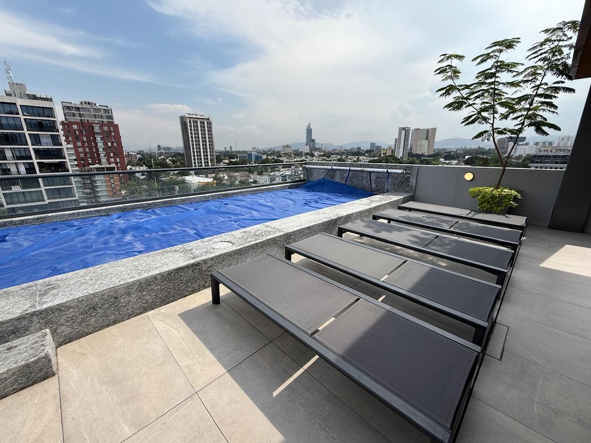 Apartament z grillem na dachu + siłownia | Av. Chapultepec
