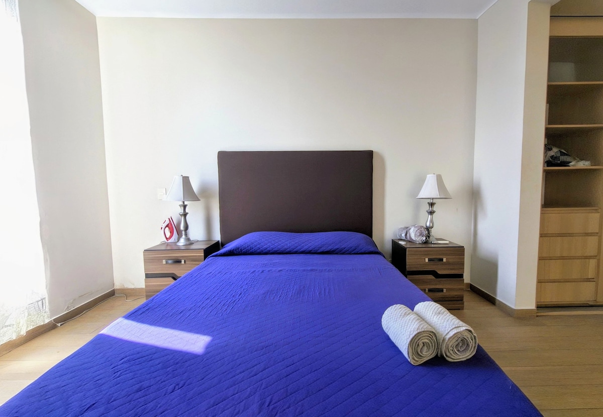 Mieszkanie z dwiema sypialniami, jadalnia, kuchnia, garaż na dwa samochody. Bardzo czyste, pościel i nowe ręczniki 1., wygodne i ekologiczne, lekka i ciepła woda przy ogniwach słonecznych, zapasowy kocioł. Doskonała lokalizacja (Chapalita), w pobliżu Expo Guadalajara. AAcond for hot and cold, and WIFI throughout the apartment. Telewizory 4K Samsung do 70 cali , Opcja 2 więcej osób. Gwarantowana czystość, jakość i obsługa. Spersonalizowana uwaga.
