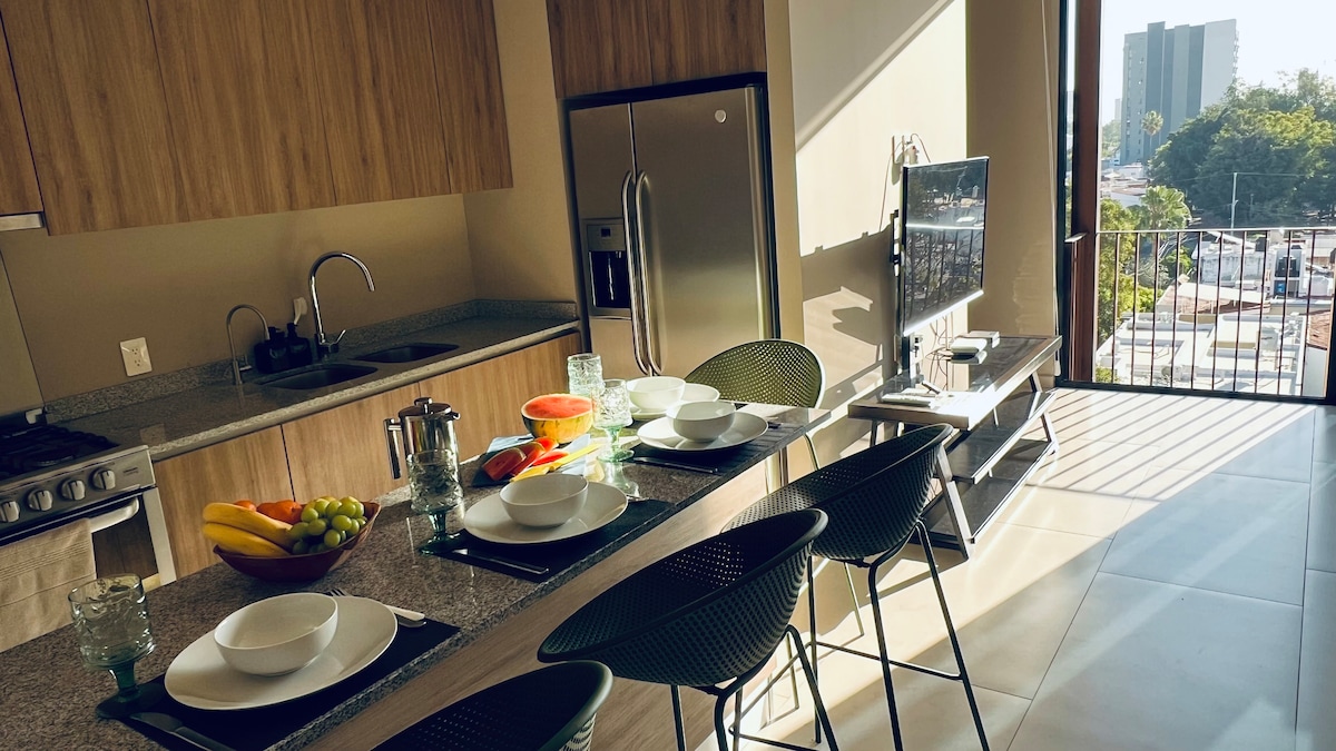 Wspaniały apartament kilka metrów od La Minerva w Guadalajarze w Meksyku. Idealne, jeśli przyjedziesz do miasta na spotkanie lub na wystawę. W odległości spaceru znajdziesz kawiarnie, restauracje i bary. Poczujesz się jak w domu, w urządzonej i zaprojektowanej przestrzeni, aby cieszyć się pobytem. W apartamencie znajduje się w pełni wyposażona kuchnia, stół jadalny, łazienka. Ma strategiczną lokalizację: bardzo łatwo będzie zaplanować wizytę w Gdl!