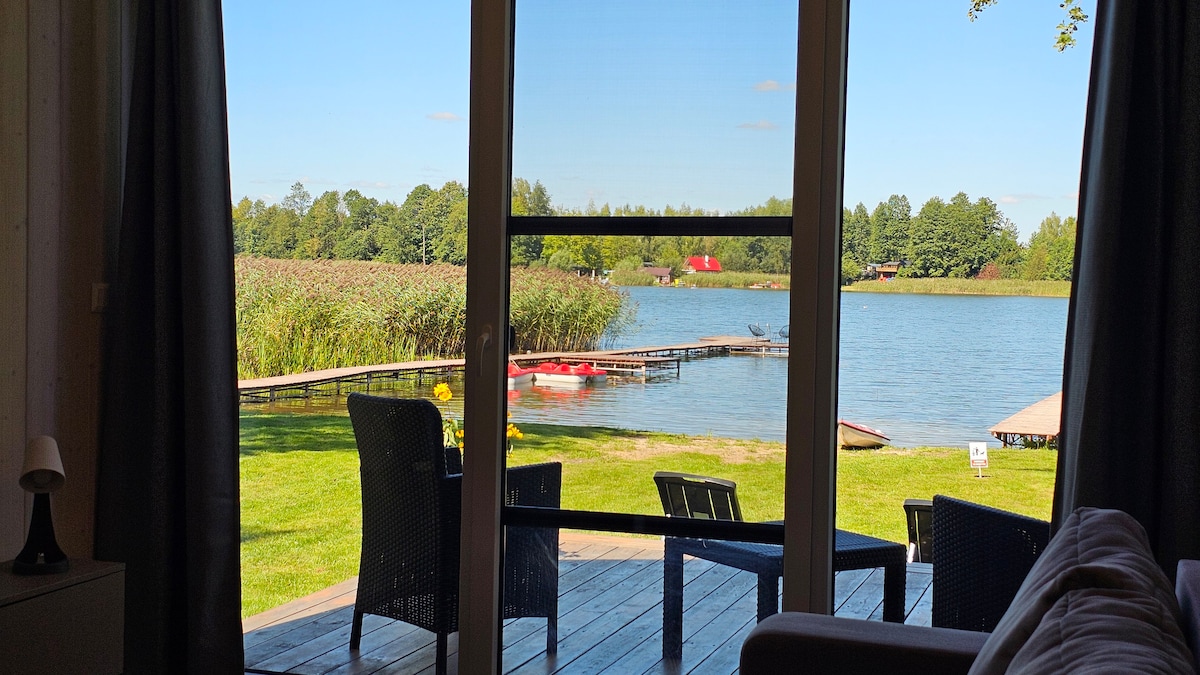 Zarezerwuj pobyt w tym miejscu i odpocznij na łonie natury.W nowym komfortowy domku nad samym brzegiem jeziora zdala od miejskiego zgiełku zrelaksuj się w jakuzzi i saunie 100 m od domku nad samym jeziorem. Na miejscu skorzystaj z dwóch zarybionych stawów lub skorzystaj ze sprzętów wodnych dostępnych w cenie pobytu. Na miejscu wypożyczalnia quadów i rowerów turystycznych dla osób chcących zwiedzić malowniczą okolice i podziwiać piękno mazurskiej przyrody. W chłodne dni rozgrzeje ciepło kominka