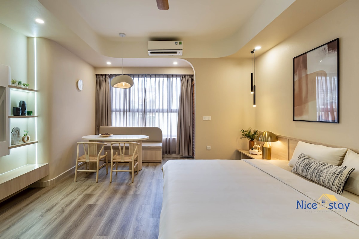 Location: very close to the airport (1km) , inside morden and luxury Orchard Garden Building and easily get access to City Center * Amenities: fully morden funiture, a lot of sunlight, private access to apartment, Simply Self check-in, free gym and rooftop pool * Nearby: convenient stores, restaurants, leisure center, shopping mall, green park, coffee shops * Tranportation: Taxi Area, Grab service available 24/24 with security guards' help * Support 24/24, Flexible and Dynamic from Host