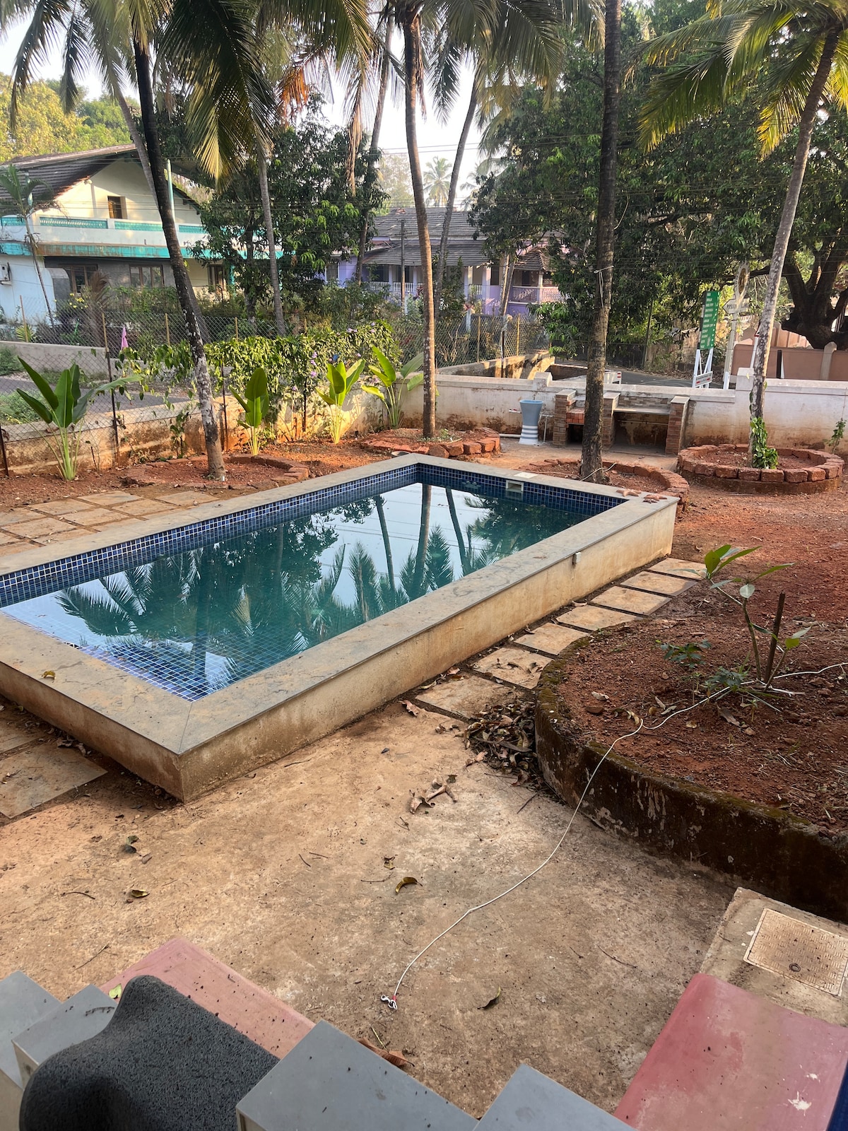 Witamy w luksusowym domu Zaprojektowana z połączeniem uroku Goan i nowoczesnej elegancji, ta luksusowa willa z 2 sypialniami oferuje idealne miejsce dla rodzin, par i grup przyjaciół. Wejdź do domu, który otwiera się na prywatny basen, i odpręż się w przytulnych sypialniach z miękką pościelą. Co Ci się spodoba: ✓ Prywatny basen zaledwie kilka kroków od salonu ✓ Przestronny układ 2BHK idealny dla 4 gości. ✓ W pełni wyposażona kuchnia i jadalnia. ✓ Szybkie Wi-Fi + telewizor Smart TV ✓Spokojna okolica
