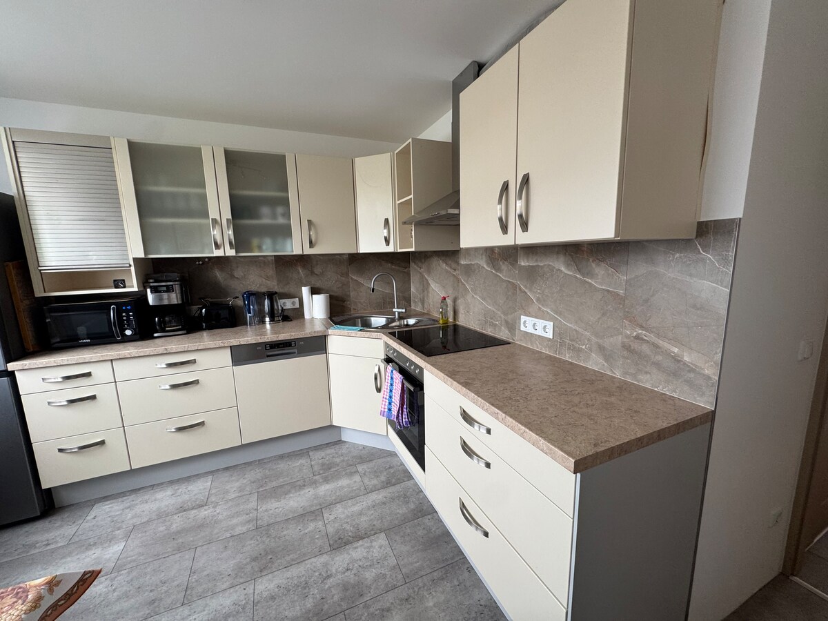 Goście mają do dyspozycji słoneczne mieszkanie na parterze w bloku mieszkalnym, z balkonem. W cichej okolicy z dużą ilością zieleni. ---- Den Gästen steht ein Sonniges Appartement im Erdgeschoss mit Balkon in einem Wohnblock zur Verfügung. In einer ruhigen, grünen Gegend. ---- Guests have at their disposal an sunny apartment on the ground floor in a block of flats, with a balcony. In a quiet, green area. Wir sprechen Deutsch ---- We speak Englisch