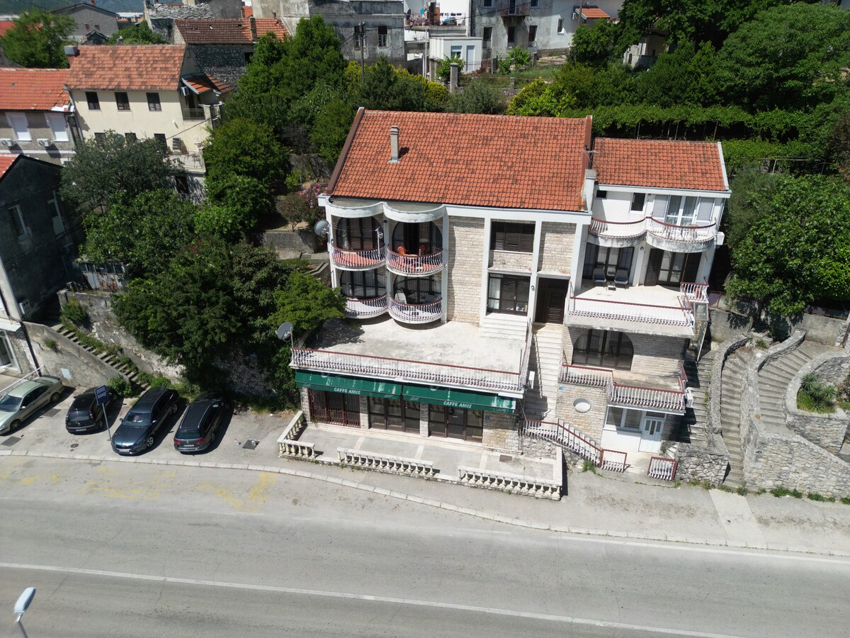 Kamienny dom w wiejskim otoczeniu, w pobliżu rzeki Trebisnjica,położony między dwoma klasztorami Duzi i Tvrdos. W tym pięknym otoczeniu dostępne jest dziedziniec z ogrodem i elementami tradycyjnej architektury hercegowińskiej. Dom ma wspólne wejście, które prowadzi do dwóch oddzielnych apartamentów. Odległość od centrum miasta Trebinje wynosi 7,9 km, od miasta Słońca 1,4 km,od Dubrownika 28 km,od lotniska Cilipi 36 km i Herceg Novi 45 km.