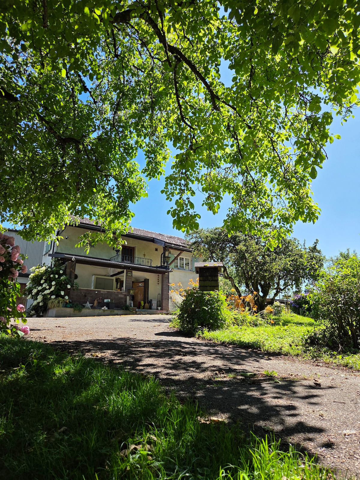 Wynajmujemy bardzo ładne, nowo umeblowane i przytulne mieszkanie o powierzchni 30 m2 z oddzielną sypialnią. W otwartym salonie z kuchnią i jadalnią znajduje się duża sofa rozkładana. Apartament ma osobne wejście i znajduje się na parterze (bez schodów), a bezpłatny parking jest tuż obok apartamentu. Mieszkanie znajduje się w centrum wioski i jest łatwe do znalezienia. Tylko trzy minuty do przystanku autobusowego, 40 minut do Zurychu. My, rodzina gospodarzy, mieszkamy na piętrze.