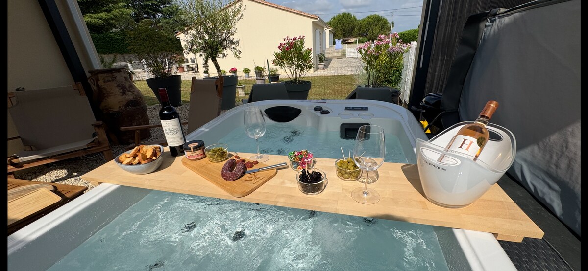 Ten uroczy domek znajduje się u bram Angoulême. Zaprojektowana z myślą o romantycznych i niegrzecznych wyjazdach, ta przestrzeń jest przeznaczona dla Twojej pary. Całkowicie ekskluzywne, możesz cieszyć się 4-osobowym spa, dużym łóżkiem i wszystkimi udogodnieniami hotelowymi, pościelą kąpielową, pościelą do spania, ręcznikami, szlafrokami, kapciami. Śniadanie dostępne, 1/2 butelki szampana i opcje dostępne na życzenie (posiłki, tacki z aperitifem, pudełka rekreacyjne, czekoladki, kwiaty ... )