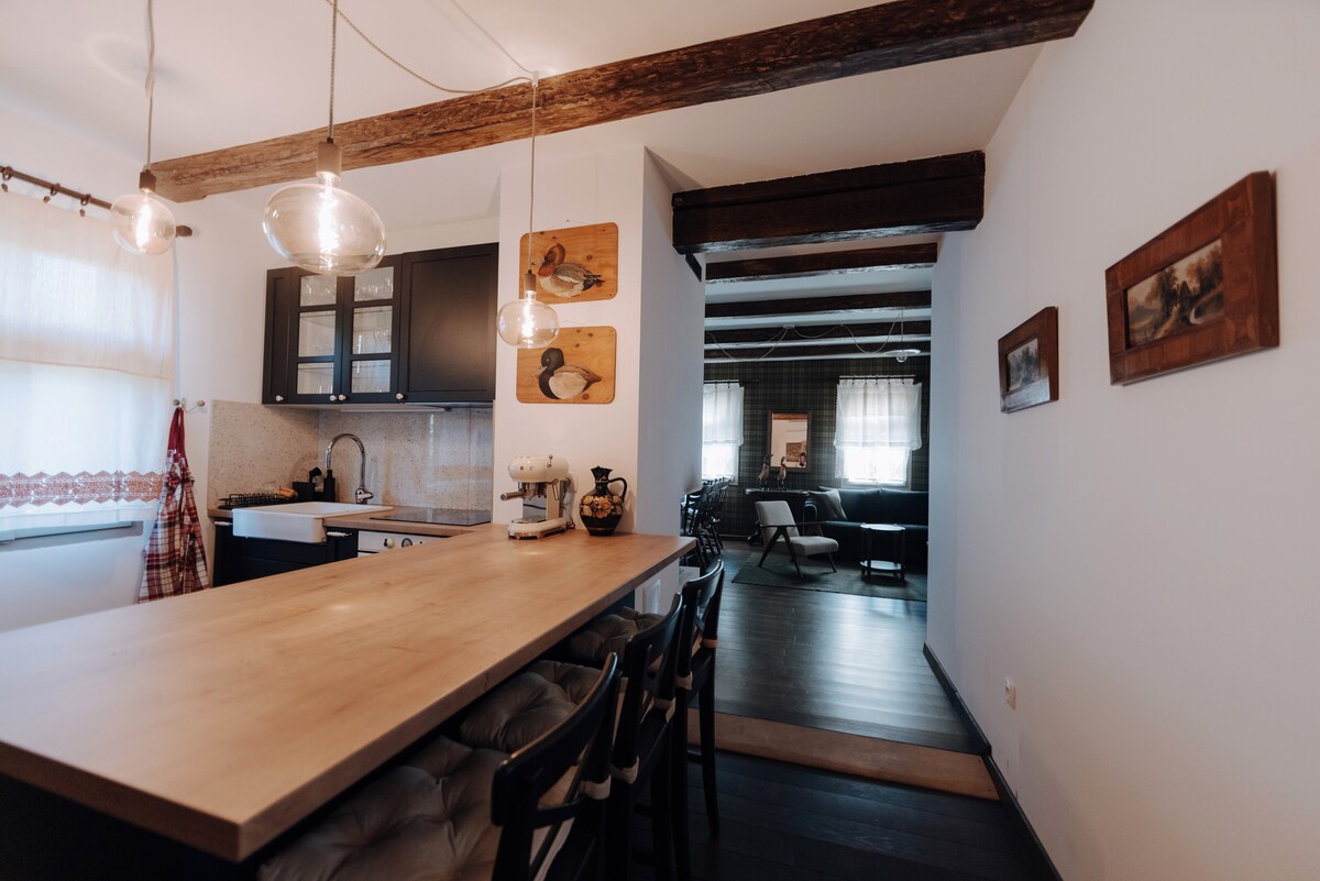 Drewniany wiejski dom z 1931 roku to idealne miejsce dla tych, którzy kochają spokój, przyrodę i relaks na wiejskiej posiadłości. Ten jedyny w swoim rodzaju dom ma wszystko, czego potrzebujesz na wypoczynek na wsi.