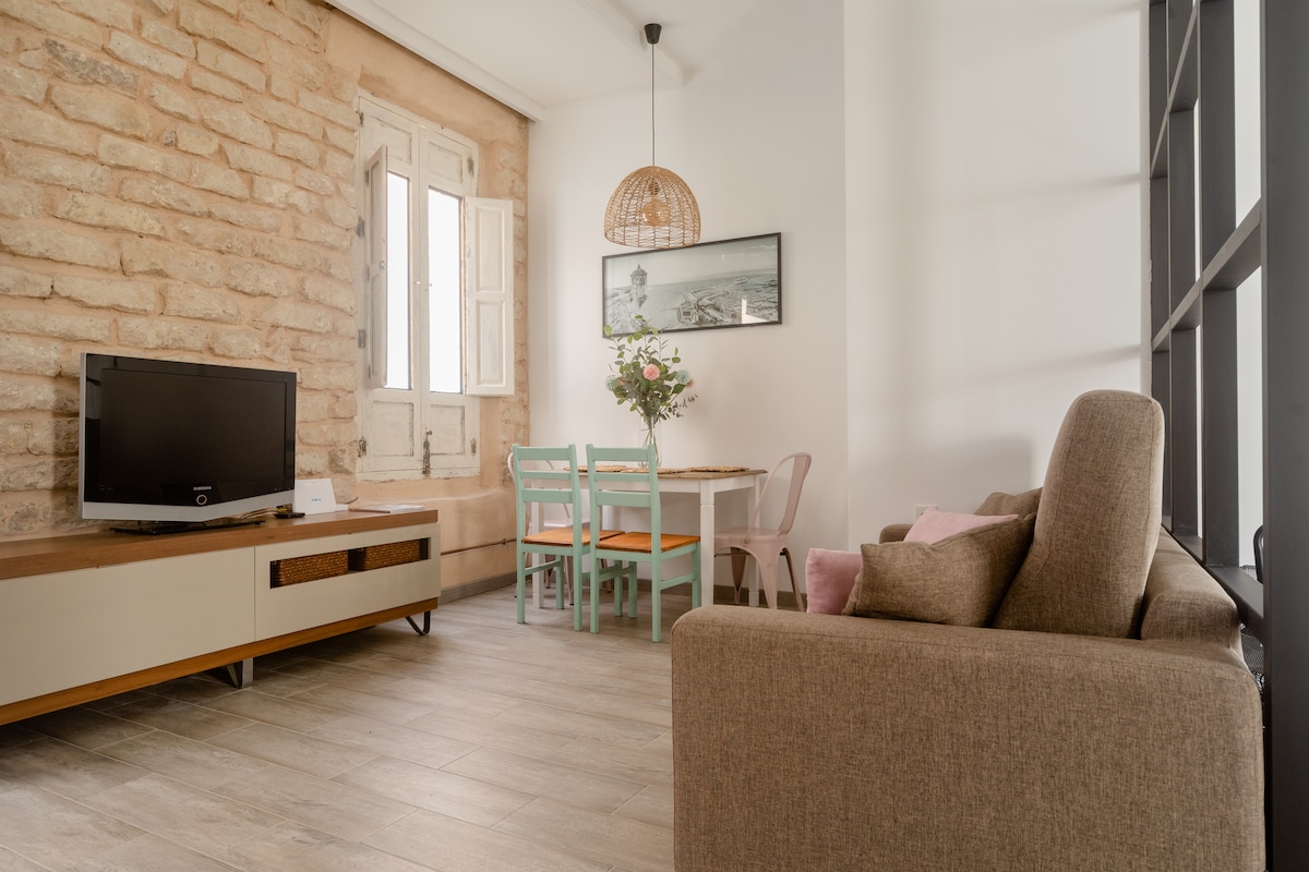 Precioso loft recién reformado, ideal para una escapada en pareja. Dispone de cama de matrimonio, sofá cama muy cómodo, salón y cocina en un espacio abierto. Baño cerrado y pequeño patio privado para disfrutar con tranquilidad. WIFI EXCELENTE. Todo nuevo. A 17 minutos a pie del Castillo de Santa Bárbara y de la Playa del Postiguet. Barrio rodeado de restaurantes y comercios, a 6 calles de un gran centro comercial. Muy bien comunicado con autobuses y TRAM.