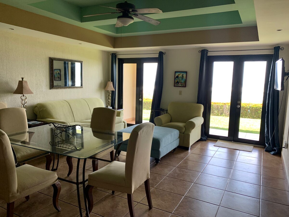 Apartament 112 o powierzchni 500 stóp² to apartament z jedną sypialnią na parterze, najbliżej basenów nad oceanem i restauracji Sea Salt w Gran Pacifica Resort. Wyposażony jest w aneks kuchenny, centralną klimatyzację, telewizor Smart TV, Wi-Fi i sofę w salonie z widokiem na morze. Znajduje się tu również jadalnia dla 4 osób oraz wszystkie naczynia, sztućce, szklanki i inne przybory kuchenne. Ma piękną werandę nad oceanem z krzesłami, aby cieszyć się porankami i zachodami słońca.