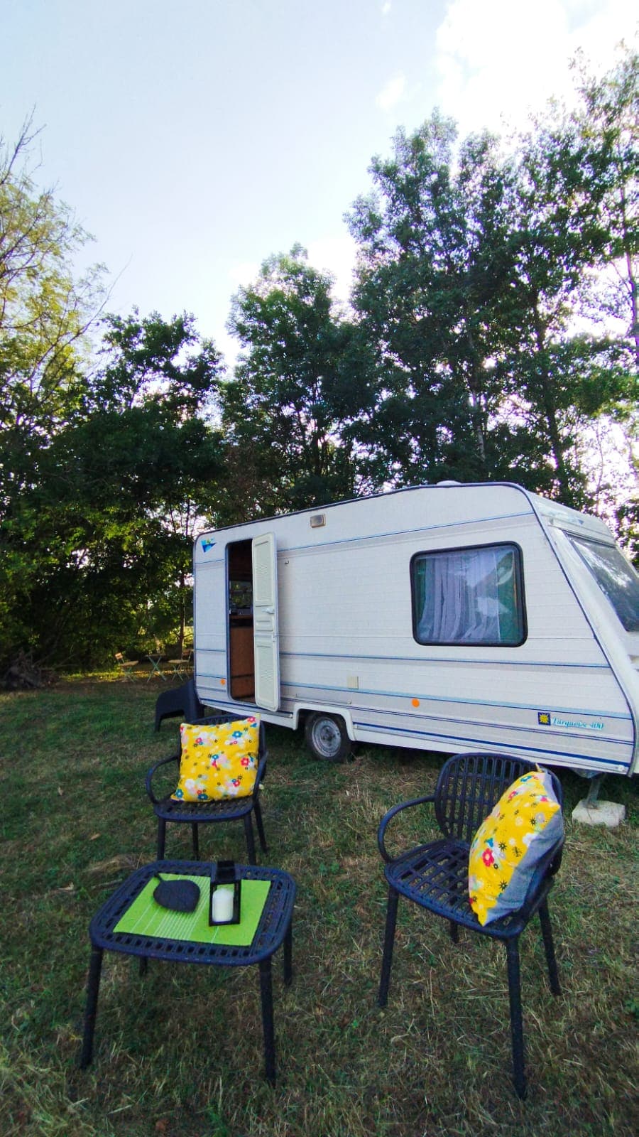 Chcesz wrócić do źródeł? Przyczepa kempingowa Marii obiecuje nietypowy i egzotyczny pobyt. Znajduje się w pobliżu Roulotte d'Orsély (widocznej na AirBnB) w odległej części terenu otoczonej zielenią, zapewnia niezbędny cień, aby cieszyć się swoim małym tarasem. Elektryczność i punkt poboru wody do odświeżenia się (miska, kanister). Mini lodówka. Sanitariaty (prysznic i toaleta) na zewnątrz. Śniadania za dodatkową opłatą. Ręczniki kąpielowe nie są zapewnione.