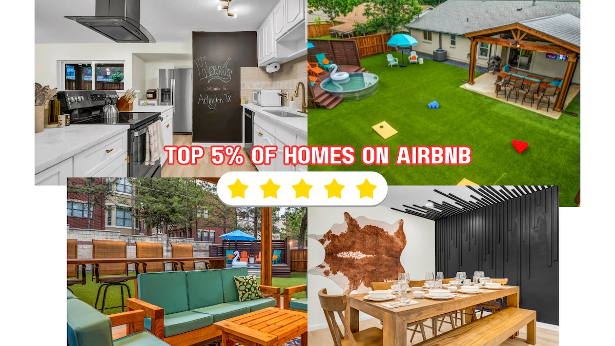 Escape to your private DFW-area resort–a freshly updated 3BR/3.5BA luxury home (sleeps up to 12) with a huge gated pool, two loaded game rooms, and every detail designed for families, friend trips, and unforgettable weekends! ☀️ Minutes from AT&T Stadium, Globe Life, Six Flags, Hurricane Harbor, Texas Live!, theaters, shopping, & DFW Airport. Quiet, family-friendly neighborhood with easy highway access–the perfect home base for Cowboys games, concerts, theme parks, or just relaxing Texas-style.