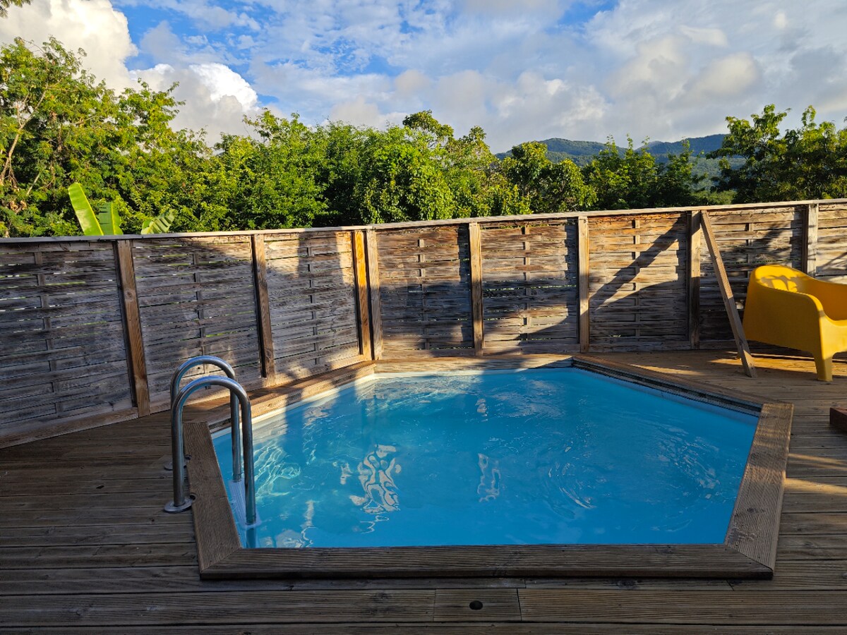 Tiny House położony na wzgórzu na wysokości 400 m n.p.m. pośrodku sadu owocowego. Dostępny leśną drogą w dobrym stanie. Spokojne i odizolowane miejsce między morzem a górami z widokiem na okolicę. Naturalnie chłodne i przewiewne mieszkanie bez komarów. Ekologiczne mieszkanie. Położony 10 minut od plaży Leroux 20 minut od plaży Malendure 20 minut od plaży Grande Anse Odpowiednie dla osób, które chcą się odłączyć, odpocząć lub naładować baterie.