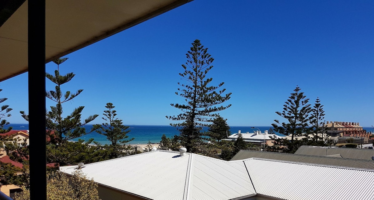 Bright 2 bedroom apartment on the 4th floor (NO LIFT) with amazing sea views only 242 steps from the beautiful Grange Jetty where a local seal and pods of dolphins are regularly seen. Pub, restaurants, cafes, coffee shops, bakery all within easy walking distance in a beautiful beach side suburb. There are beach towels if you want to take a dip as well a beach cricket set. 10min drive to Glenelg, 20min to city by either car or train to Adelaide Oval for the Football/Cricket, LIV Golf 3km away.