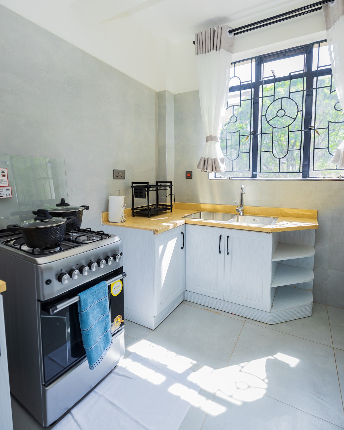 Ten elegancki i gustownie urządzony apartament znajduje się na 4 piętrze, co pozwala na doskonałe widoki na okolicę. Zamknięta dzielnica z całodobową ochroną znajduje się w dzielnicy finansowej Nairobi, ma łatwy dostęp do centrum miasta, szpitali Kenyatta i Nairobi, AAR, Nairobi Club, Biblioteki Narodowej, restauracji, banków, centrów handlowych. Znajduje się w pobliżu ambasady Izraela i hotelu Fairview. Idealne na pobyt służbowy i wakacyjny. Nasza przestrzeń jest dezynfekowana i odkażana.