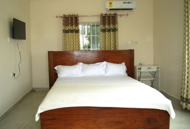 Nowo wybudowany dom w East Legon Hills , bardzo bezpieczne środowisko. Z obsługą lotniskową (transfer na lotnisko)/własnym kierowcą . Dom składa się z 10 pokoi, z których każdy ma własną przestronną łazienkę . Klimatyzacja i lodówka w każdym pokoju oraz prywatny prysznic i łazienka . Mamy również szefa kuchni, który może zaoferować zarówno kuchnię ghańską, jak i międzynarodową... dbamy o dobre samopoczucie. Dostępna jest całodobowa ochrona i telewizja przemysłowa.