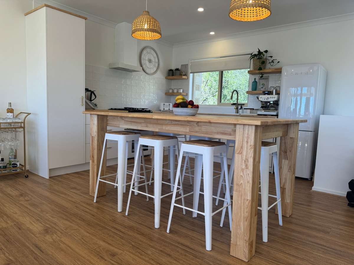 Have fun with the whole family at this Old Lonny Mid-Century Classic. Recently renovated with all the mod-cons and plenty of toys including bikes x3and a SUP (Have a look at all the photos) for the perfect beach getaway only 4 houses from back beach, 10 minute walk to front beach ideal locale on a private road within old Lonny. 1xKing 1xQueen and 2x2 bed bunks, a garage to play in, a big backyard to lounge in, and a comfortable house to hang in. Listen to the waves as you go to sleep. Enjoy!