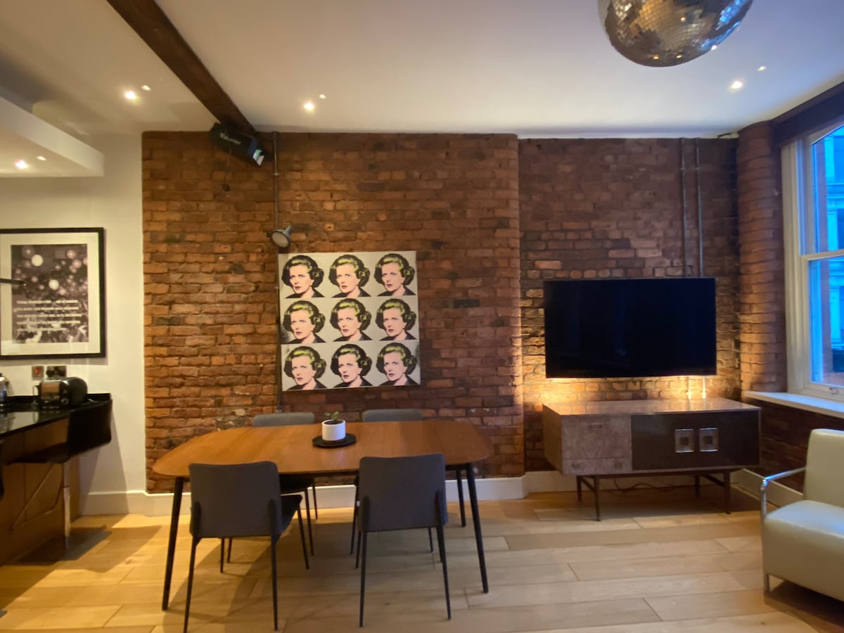 Stylowe mieszkanie w centrum miasta, przemyślanym wystroju. Posiada spokojny balkon i jest położony w spokojnej zielonej dzielnicy. Zrelaksuj się w przestronnym łóżku typu king-size z wyjątkowym materacem Emma Original Hybrid. Bądź w kontakcie dzięki szybkiemu domowemu łączu szerokopasmowemu 5G. Idealnie położony w pobliżu hali widowiskowej AO Arena i stacji Victoria, zapewnia łatwy dostęp do stadionów piłkarskich i nie tylko.