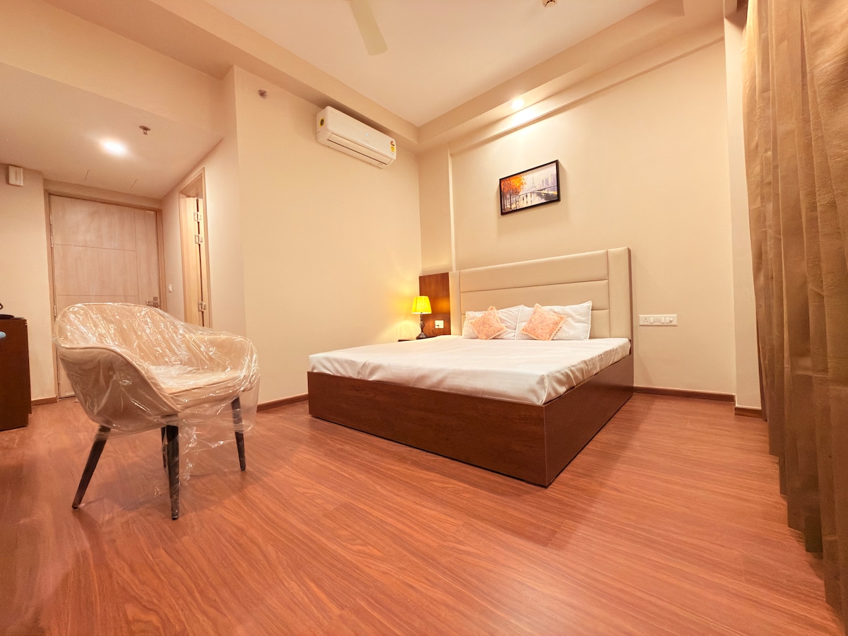 Podziwiaj widoki na miasto z tego stylowego apartamentu w samym sercu Greater Noida, kilka minut od India Expo Mart, Wipro, Jaypee Greens i Pari Chowk. Eleganckie wnętrza oferują łóżko typu queen-size, telewizor Smart TV i klimatyzację, a w pokoju jest dużo naturalnego światła słonecznego, które tworzy ciepłą, przyjazną atmosferę. Korzystaj z Wi-Fi o prędkości 100 Mb/s, które umożliwia bezproblemową pracę lub streaming, poręcznego ekspresu do kawy i urządzeń do gotowania na żądanie. Idealne na podróż służbową, wypoczynek i wszystko pomiędzy