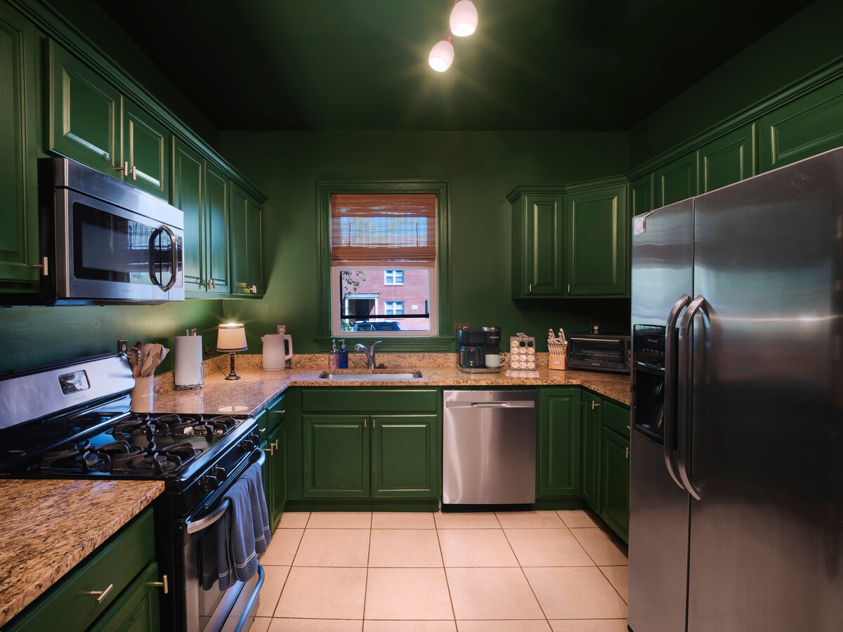 Ten oszałamiający apartament oferuje luksus i wygodę dla podróżujących pielęgniarek, profesjonalistów, osób podróżujących w pojedynkę lub par. W pełni wyposażona kuchnia wyposażona jest w frytkownicę beztłuszczową, garnek, bar kawowy i ekspres do kawy Bartesian, które zapewniają prawdziwe wrażenia z pobytu z dala od domu. Rozkoszuj się widokiem z tarasu na dachu, zrelaksuj się na dwóch podwórkach lub zanurz się w basenie. Kompleks obejmuje salę do jogi, centrum fitness, nowoczesną przestrzeń do pracy i prywatny parking podziemny. Idealne miejsce na niezapomniany pobyt!