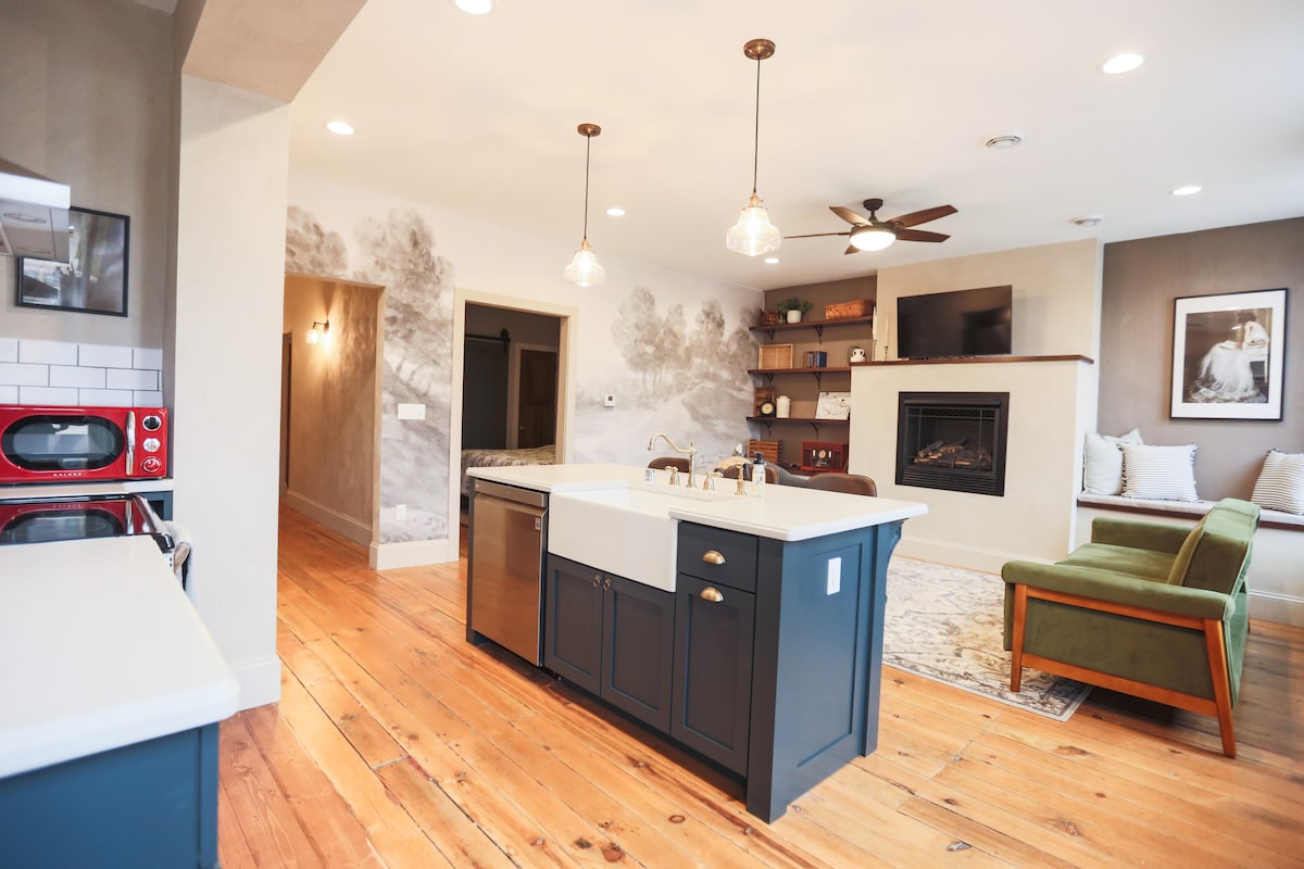 Loft 3 znajduje się 40 stopni (2 piętra) nad Monroe Square. To jest wspinaczka, ale widok jest tego wart! Nowo odnowiona w 2021 roku i przypominająca charakter budynku z 1859 roku, ta przestrzeń jest urocza, przytulna i naprawdę jedyna w swoim rodzaju. Dosłownie kilka kroków od wejścia znajduje się Sunrise Donut Cafe, oferujące spersonalizowane pączki i pełne menu doskonałych kaw. Stamtąd odkryj resztę placu, aby zjeść, napić się i zrobić zakupy w uroczym klimacie Main Street.