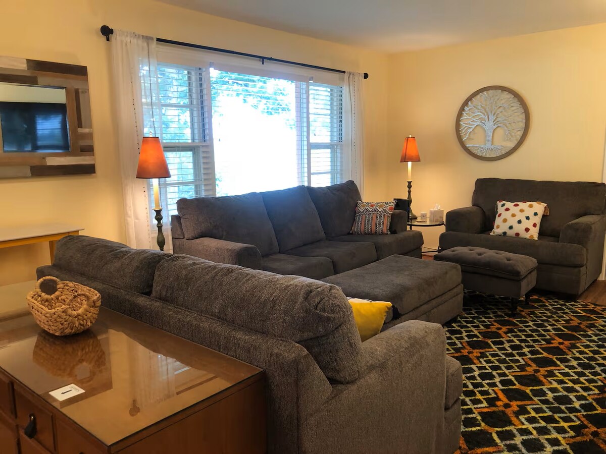 Dłuższe pobyty ✹ ze zniżką Ładowarka EV ✹ poziomu 2 w garażu na 2 samochody ✹ 1 Gb/s ultraszybkie Wi-Fi ✹ 65-calowy telewizor 4K LED z odtwarzaczem DVD ✹ Prywatne podwórko z przestronnym trawnikiem + zadaszone siedzenie na patio + grill ✹ Pełna kuchnia ✹ Luxury Memory Foam beds in all bedrooms with 1 King +2 Queen+1 convertible Futon bed ✹ Dobrze zachowujące się zwierzęta dozwolone w indywidualnych przypadkach ✹ Centralna lokalizacja w pobliżu lokalnych restauracji, sklepów spożywczych i atrakcji Potrzebujesz więcej telewizorów – rozważ naszą najnowszą ofertę airbnb.com/h/zendelight