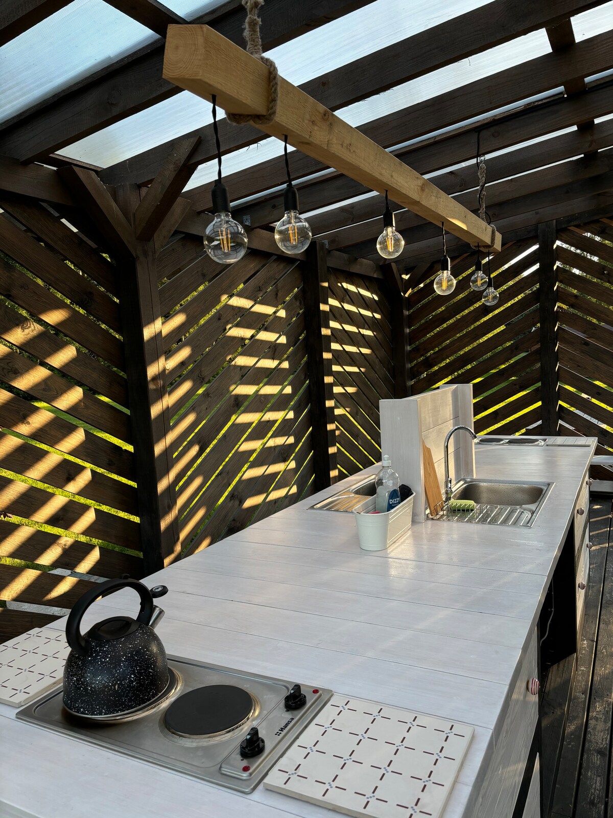 Witaj w West House, gdzie Twoje wakacje zaczynają się 3 metry nad ziemią. Ten wyjątkowy dom w kształcie litery A zachwyci Cię swoim wyjątkowym układem i poczuciem domu, który wykracza poza oczekiwania. Obejmij spokój lasu sosnowego i doświadcz obecności przyrody przez cały rok. West House znajduje się zaledwie 10 minut spacerem od malowniczej plaży Bernāti. Idealne dla 5+1 gości. Odpręż się, naładuj i stwórz cenne wspomnienia w tej niezwykłej ucieczce z natury.