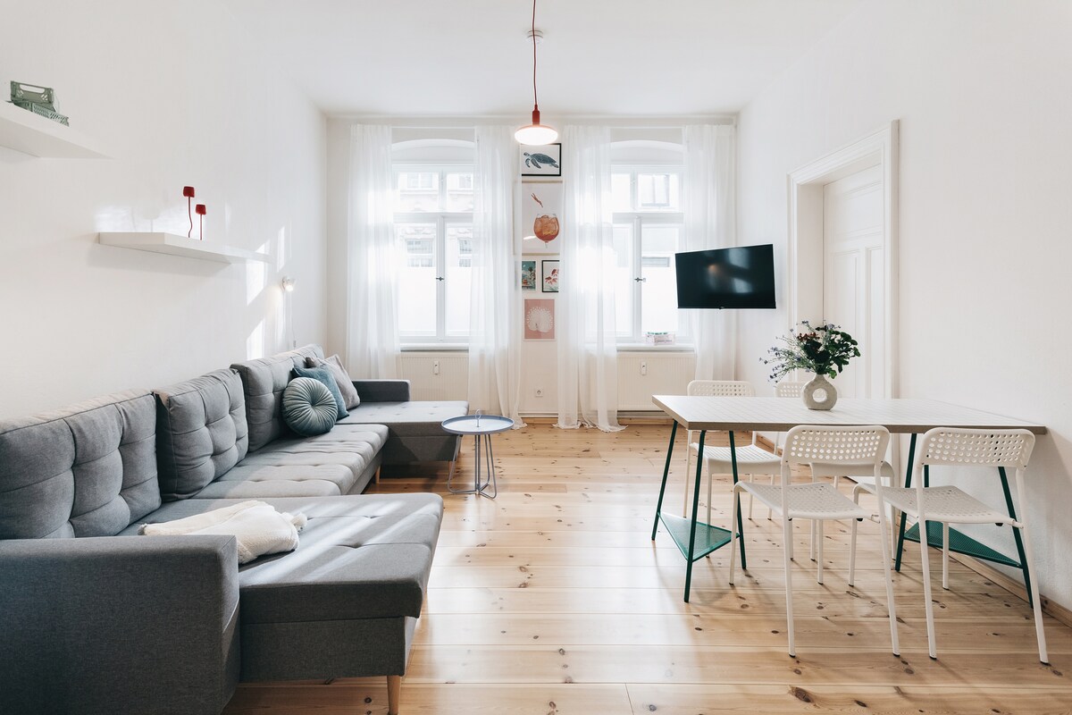 Czeka na Was przytulny apartament na poddaszu o powierzchni 70 m² nad dachami Sebnitz, miasta jedwabnych kwiatów. Apartament posiada dwie sypialnie, duży salon, łazienkę z prysznicem i w pełni wyposażoną kuchnię. W nowo wyposażonej kuchni oprócz kuchenki indukcyjnej znajdą Państwo zmywarkę Miele, a nawet pralkę-suszarkę Siemens. Samochód można zaparkować bezpośrednio na bezpłatnym prywatnym parkingu za domem. Obok znajdują się 2 stacje ładowania dla Waszego Tesli.