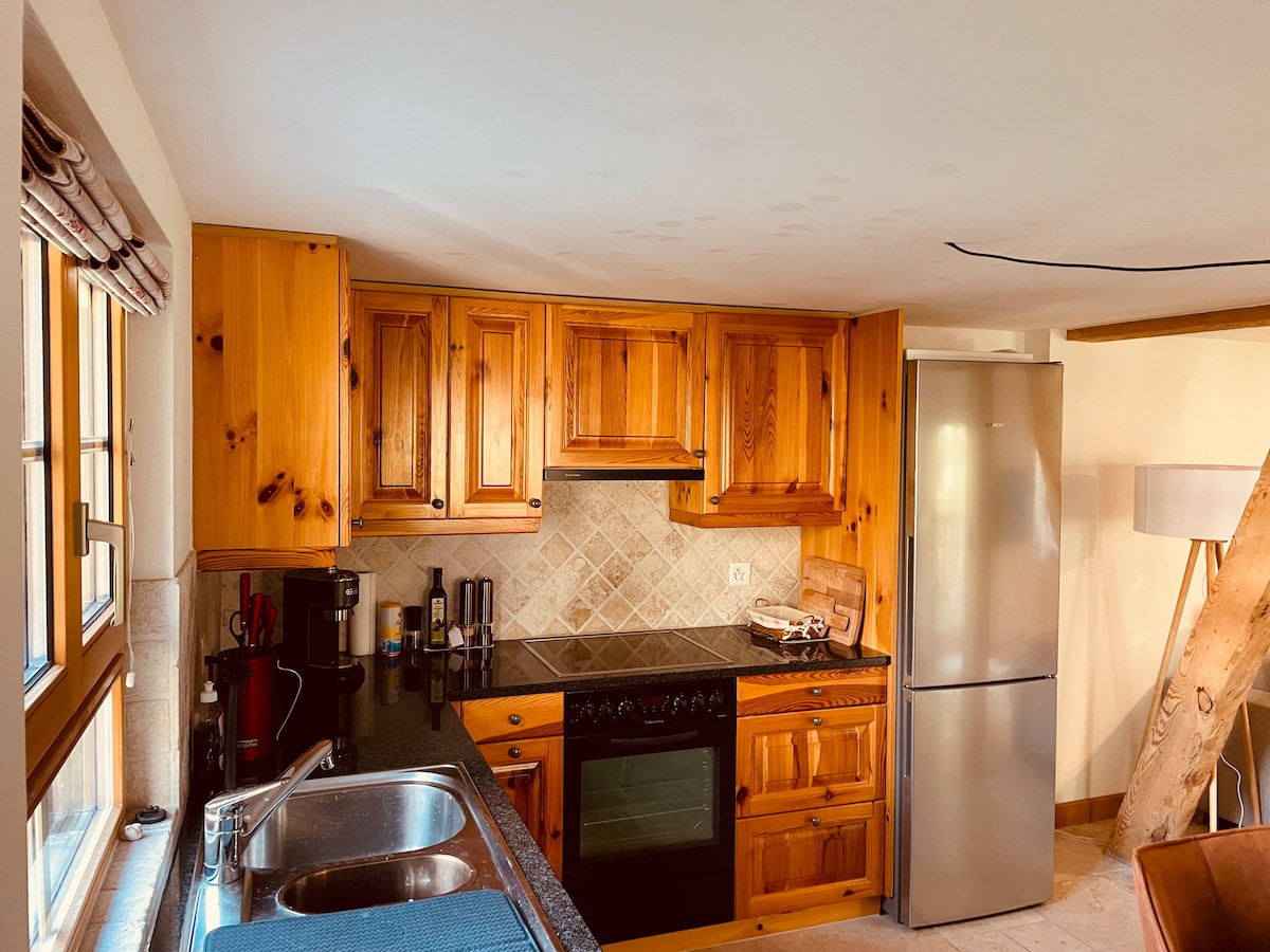 A charming, elegant and beautifully decorated high-ceiling apartment, furnished to the highest standards and fully equipped with a private terrace for you to enjoy a cosy and memorable stay and the most stunning panoramic views. You will enjoy access to premium shared facilities, including a swimming pool, sauna, hot tub, and fitness room, offering a true chalet-style wellness experience. And to a vaste salon with high ceilings, fire place and a large terrace with views of the mountains.