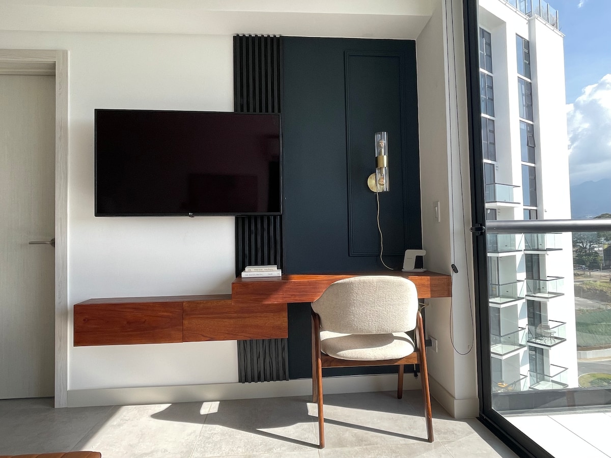 Luxury apartment with A/C, cozy, and perfectly located in the heart of the city. This fully equipped space, with modern and elegant decoration, offers you the freedom to live safely and comfortably while exploring everything the city has to offer. Close to tourist attractions, banks, supermarkets, and restaurants. (The condominium has 8 restaurants within the facilities) The International Airport (SJO) is 20 minutes away, La Sabana Park and the new National Stadium are 3 min away in San Jose.