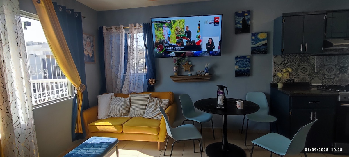 Wygodny i ładny dom w dupleksie. Z sypialni z łóżkiem typu queen-size z szafą, łazienką i prysznicem, suszarką do włosów, salon z pojedynczą sofą, jadalnią, kuchnią ze wszystkim, czego potrzebujesz do gotowania i przestrzenią z biurkiem do pracy. Centralna lokalizacja z łatwym dostępem, 7 minut od plaży, kilka przecznic od supermarketu, restauracji i głównych alei. Twoja rodzina będzie blisko wszystkiego, jeśli zatrzymasz się w tym centralnie położonym domu.