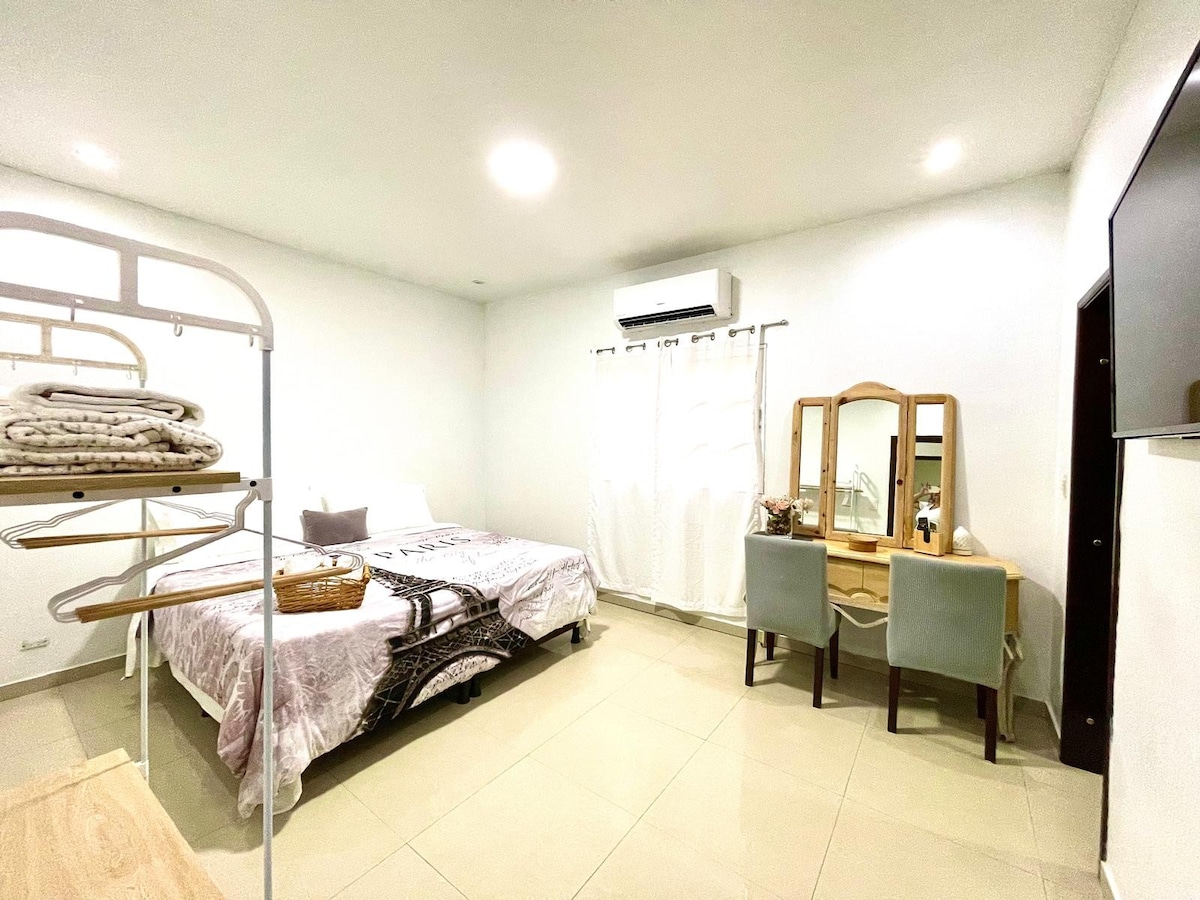 Czy chcesz spędzić wakacje w Rancho Ganadero? Co Ci oferujemy: 1. Trzy pokoje/3 łazienki. (Z wspólnym łóżkiem może pomieścić 14 osób) (Klimatyzacja + Internet) 2. Basen 3. Dostępność rowerów 24/7 oraz utwardzony i oświetlony szlak, jeśli chcesz spacerować, biegać, korzystać z roweru w nocy. 4. Konie w cenie 100 lempir za zwierzę i za 2 godziny. 5. Trampolina 6. Miejsce do grillowania 7. Ordeno 8. Boisko piłkarskie. 9. Rio Limpio para Banar. 10. Ognisko