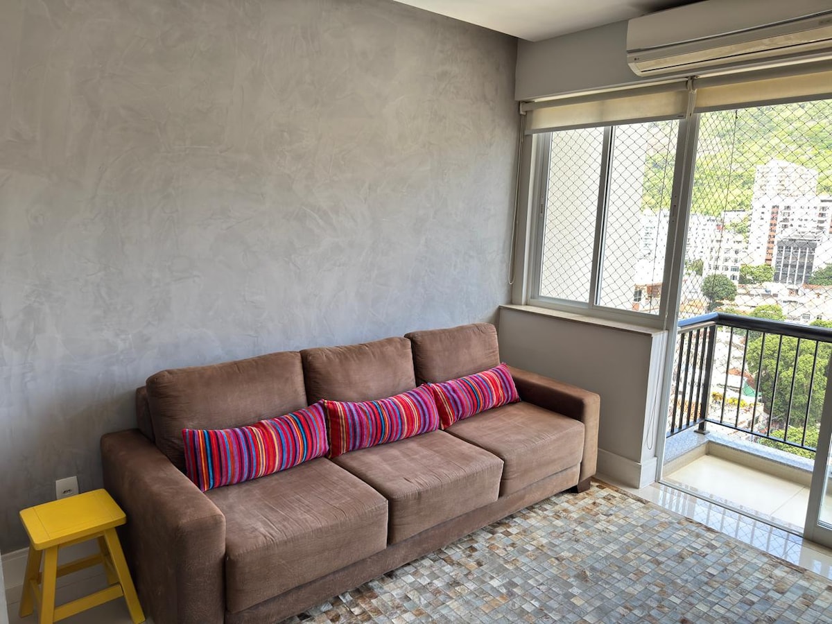 (Whole apartment!) Our quiet, comfortable space is ready for you! You'll have a kitchen with a washing machine and dishwasher, sunny living room with deck and spa, private bedroom with soundproof windows, a queen-sized bed, fiber broadband, WIFI, and suite bathroom with bathtub and shower. Botafogo is extremely walkable, and there's plenty of public transportation nearby. We are a 2 minute walk from the subway! Lay back, relax, and enjoy! We hope you enjoy your stay with us!