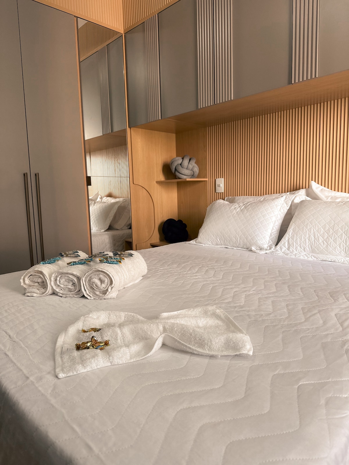 APARTAMENT 91 M2 - 3 sypialnie: 1 apartament dla par, 2 pokoje dla singli, 6 łóżek i 2 dodatkowe materace. - 2 łazienki; - W pełni wyposażona kuchnia; - Pralnia z pralką; - Pokój z telewizorem Smart TV i sofą; - Pościel, obrusy i ręczniki. - Przestronny balkon z pięknym widokiem na Lagoa da Barra i Pedra da Gávea; - Park wodny; - Bar restauracyjny; - Piekarnia/mini-market - Kort tenisowy, piaskowy, boisko do piłki halowej i sztuczne boisko; - Sala gier - SPA / jacuzzi / sauna - Salon piękności - Kino