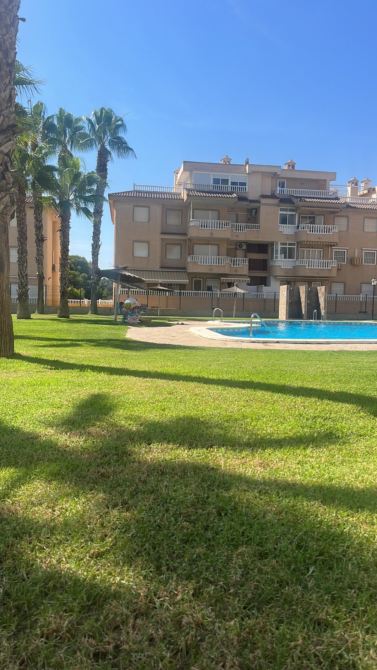 Joli bungalow vue mer, entièrement rénové et décoré avec beaucoup de soin. Tout le mobilier est neuf. Salon, salle à manger, 2 chambres à coucher avec armoires encastrées. 3 très grandes terrasses, une magnifique piscine communautaire. A moins de 5 min de deux de golfes internationaux “Villamartin Golf” et “Real Club Golf Campoamor” et à 10 min des golfes “Las Colinas Country Club” et “Las Ramblas Golf”. A 3 km de la magnifique Plage de la Zenia et à 2 km du Shoping Center Zenia Boulevard.